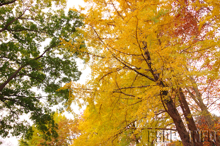 「イチョウの木が綺麗に色づいているね!」