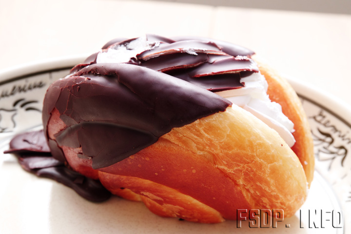 「そう言うなって!エスカルゴというと丸いパンが一般的だが、半分に折って中に生クリーム、仕上げにチョコでコーティングしてある。かたつむりに見えるだけじゃなく、クリームとチョコの甘味が最高だぞ!」